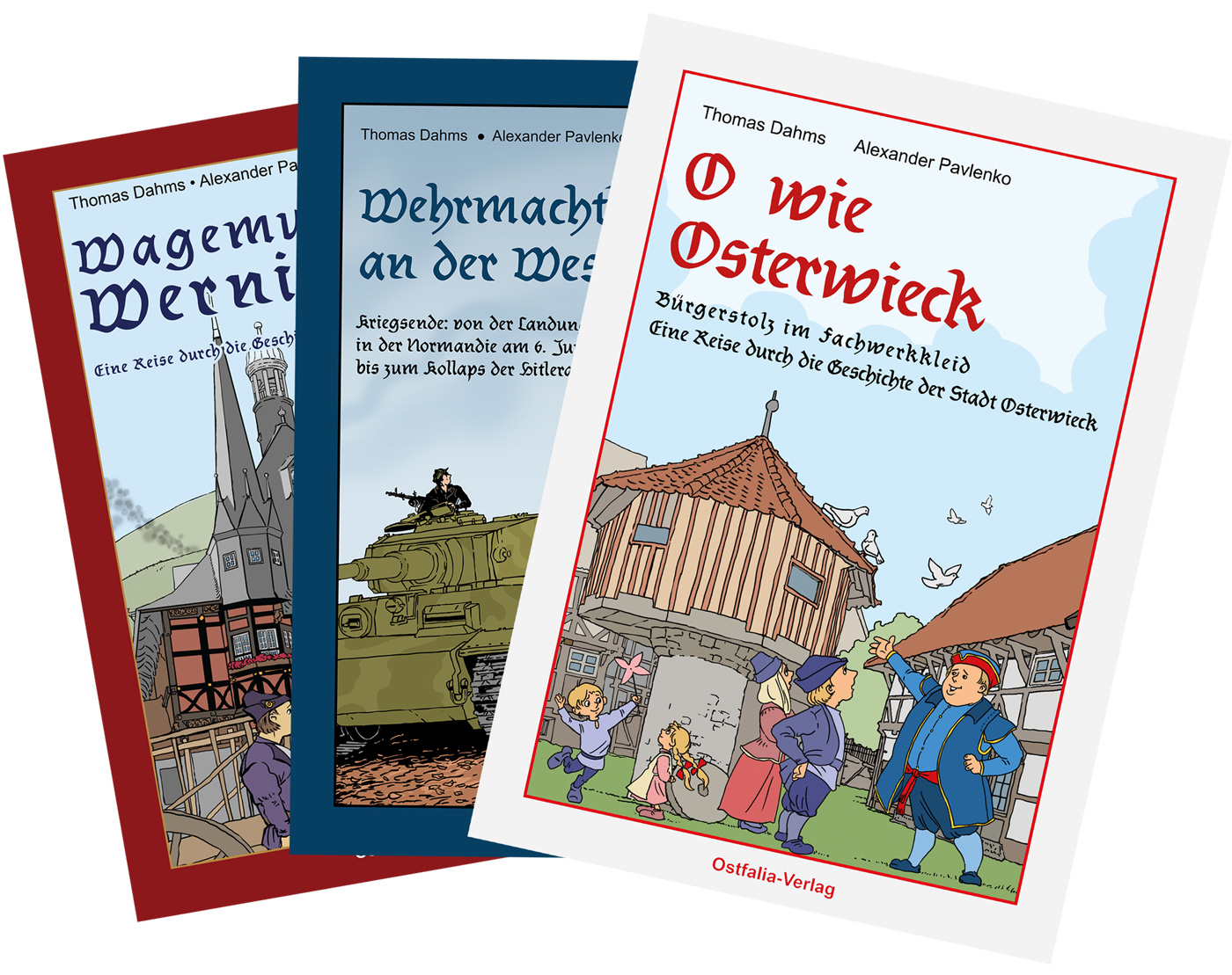 Der Osterwiecker Verlag (www.ostfalia-verlag.de) ist für seine Reihe "Deutsche Geschichte im Comic" bekannt. Verleger Dr. Thomas Dahms bietet mit der Stand up History einen weiteren Zugang zur Herkunft unserer Kultur. Wann tauchte das Wort "deutsch" erstmals auf und wen meinte es? Wieso hatten die Deutschen für sich selbst drei verschiedene Selbstbezeichnungen als Teutonen, Germanen und Deutsche? Dahms versucht, das Knäuel zu entwirren: Wieso lag der Ostharz in Schwaben und Magdeburg in Nordthüringen?