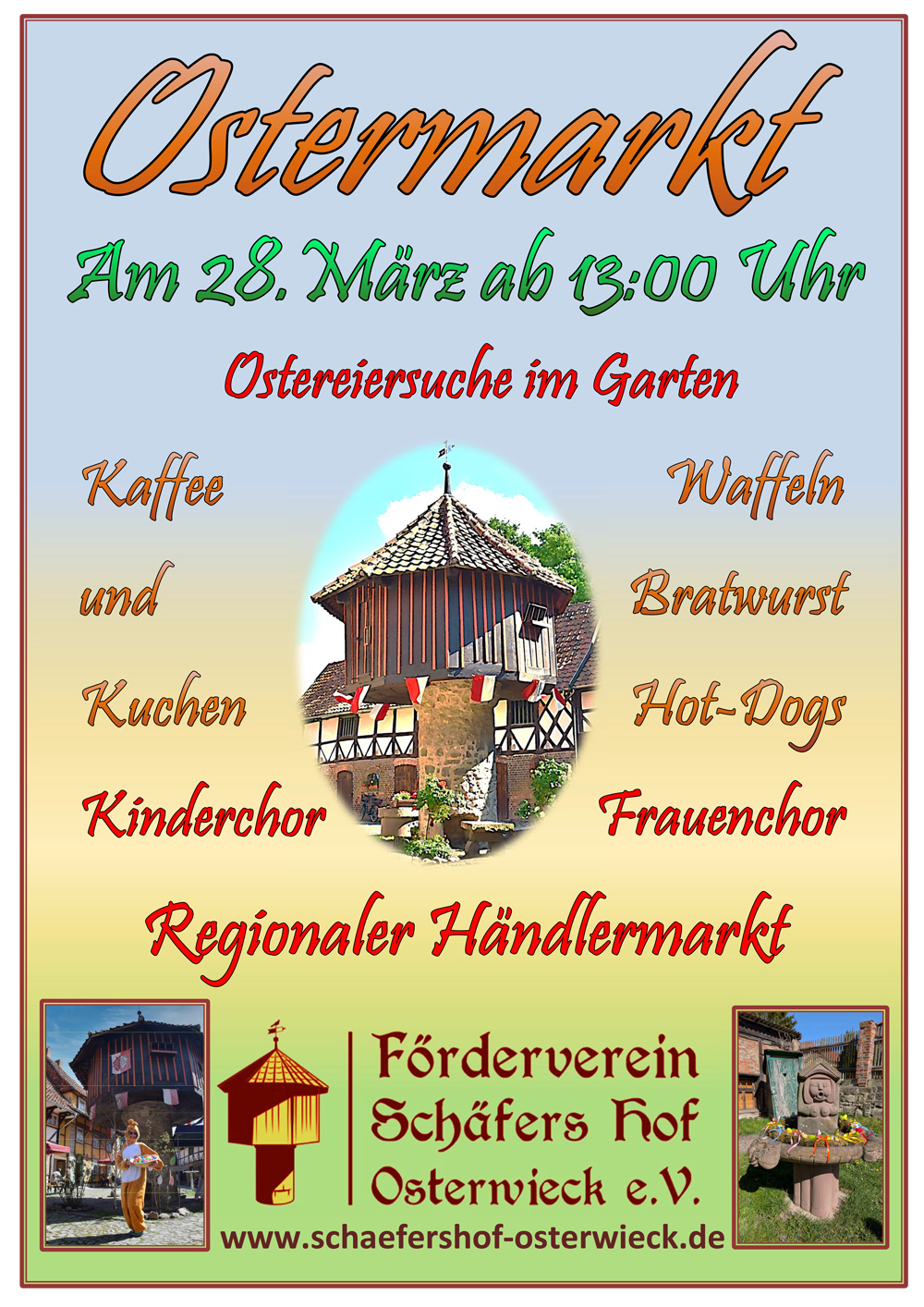 Ab 13:00 Uhr erwarten die Mitglieder des Fördervereins die Besucher des Ostermarktes auf dem Schäfers Hof in Osterwieck.